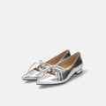メタルパーツ フラットシューズ(m17064)ホワイトグレー